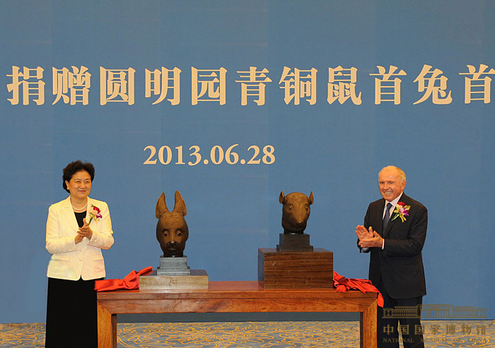 2013年6月28日,“法国皮诺家族捐赠圆明园青铜鼠首兔首仪式”在我馆白玉厅举行。中共中央政治局委员、国务院副总理刘延东出席仪式,并与弗朗索瓦•皮诺共同为兽首揭幕。
