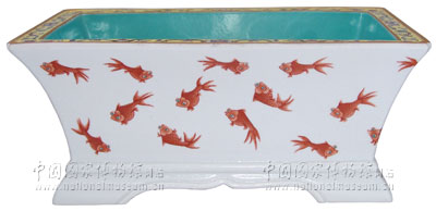 红彩金鱼纹长方形花盆