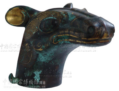 仿战国 嵌卷云纹兽首形铜辕饰 |