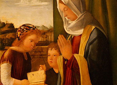十五世纪威尼斯文艺复兴时期的绘画艺术推崇古典和优雅的风格,强调对人与自然的体现,追求自然风光中的诗意,注重通过图像讲述故事,安德烈亚•曼特尼亚、阿尔维斯•维瓦里尼、真蒂莱•贝利尼、乔瓦尼•贝利尼、西玛•达•科内利亚诺、维托雷•卡尔帕乔是这一时期绘画艺术的代表大师。