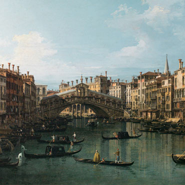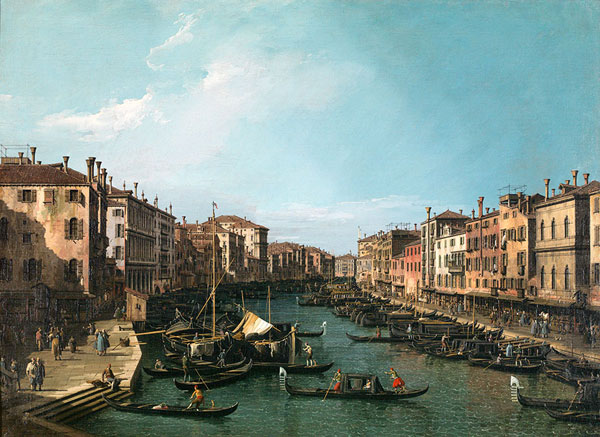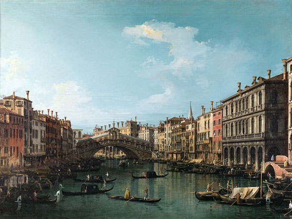 最先回应市场需求的是卢卡·卡雷瓦里斯。随后,安东尼奥·卡纳尔开始效仿。他最初跟随父亲经营剧院布景,之后很快成名,一举成为威尼斯风景画最杰出的大师,人称“卡纳莱托”。由于声名远扬,他经常受邀到各地绘画,尤其是英国。卡纳莱托获得成功的秘诀在于将启蒙运动的科学观念与自由创意巧妙地结合起来,通过“视觉照相机”,将真实的元素逐一收入镜头,还原真实的透视比例,再将它们以艺术的形式重新搭配,有意识地突出画面中引人入胜的部分。威尼斯就像被搬上了舞台,画作中最令人赞叹的就是真实的效果。卡纳莱托的“氛围透视”难以与其他作品混淆,这源于他对光线变幻莫测的特性掌控自如。为了满足强烈的市场需求,他教了许多学生,其中最突出的是贝尔纳多·贝洛托,他的作品风格独特,获得各界好评,后来受邀前往德国宫廷,最终定居于波兰。