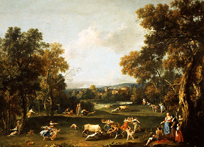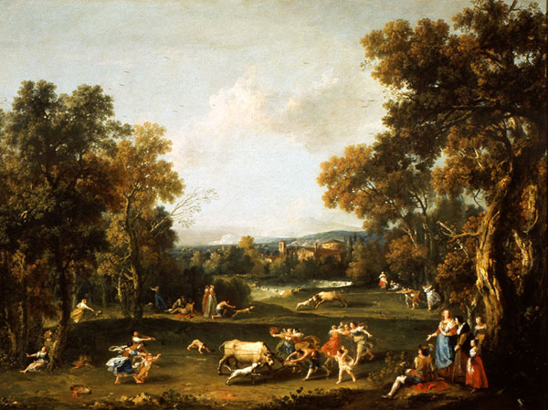 另一种类型的绘画,源自上个世纪在北欧和法国获得认可的风景画。这种绘画也发展出简单的叙事风格。在自然风景中加入贵族或平民从事娱乐消遣的画面,沉浸于不确定的“黄金年代”的田园牧歌中,这种联想来自于虚构的、美好的繁茂景象:草木、湖水和蔚蓝的远方。是由画家创造而非取材于现实,这就是弗朗切斯科·祖卡雷利和安东尼奥·扎伊斯顿令人愉悦的油画。
