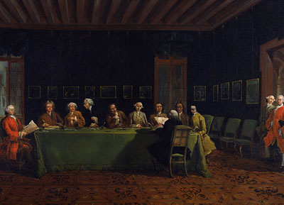 正如上个世界,“小题材”画家风生水起,在纯装饰领域也受到公众的欢迎。彼德罗·隆吉善于通过绘画自然流畅地讲述发生在宫殿角落、商店和市井广场上的小故事与日常生活,擅长表现人物的内心世界,其主角包括贵族、资产阶级和普通民众。这位高效率的“历史学家”,描绘了威尼斯共和国日薄西山进程中的情形。他通过习俗、家庭生活、寻常事件、狂欢节游戏和市民生活趣事等,忠实地记录了威尼斯社会的真相,就像一位社会编年史学家。他的儿子亚历山德罗·隆吉也从事肖像画创作。