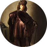 伦勃朗于1631年离开莱顿,前往经济繁荣的文化中心阿姆斯特丹。他加入了艺术商亨德里克·范·乌伦博格(Hendrick van Uylenburgh)的工作室,并依靠为阿姆斯特丹市的名人画肖像而挣得了第一笔酬金。例如,《红衣男子像》(1633年)描绘了一位精英阶层并具有国际化特征的人物,这幅作品在栩栩如生地刻画人像的同时,体现出人物的庄重感和直接性。这一时期伦勃朗的另外一些作品主要是头像画,即通过对人物或头像目标的实际观察来体现人物情感、表情和心理冲突。但总体上,伦勃朗以其历史画家的身份最为同行们所称道。他的里程碑式的作品《书房中的女神密涅瓦》是这一艺术题材的最佳例证。这幅作品将一位当代荷兰女性与古代神话中的密涅瓦女神的形象联系起来。密涅瓦不仅是掌管战争的女神,同时也是智慧与知识女神。这种将普通人与神的形象融合的技法使伦勃朗成为十七世纪历史画家中的翘楚。