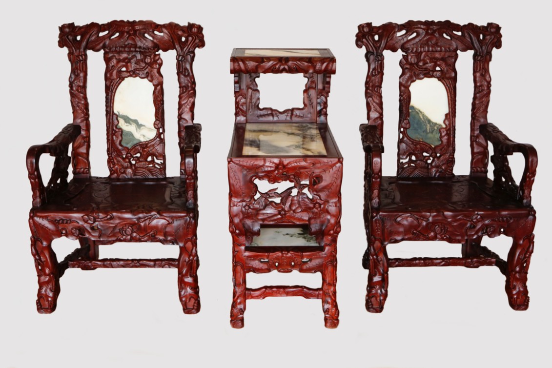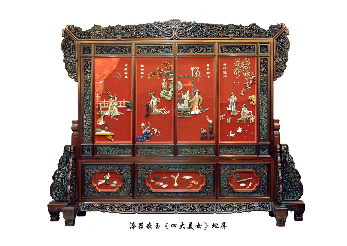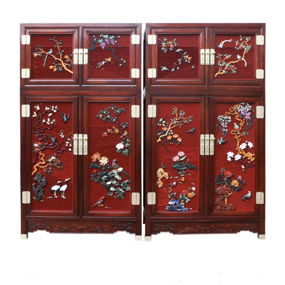 雕漆嵌玉顶箱柜 | 四季花鸟