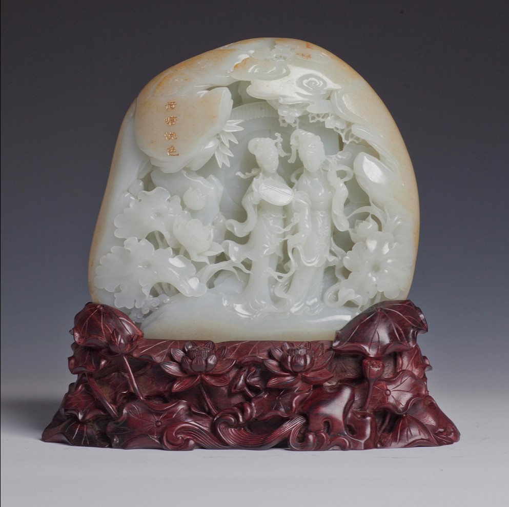 玉雕 | 和田白玉籽料 | 荷塘悦色