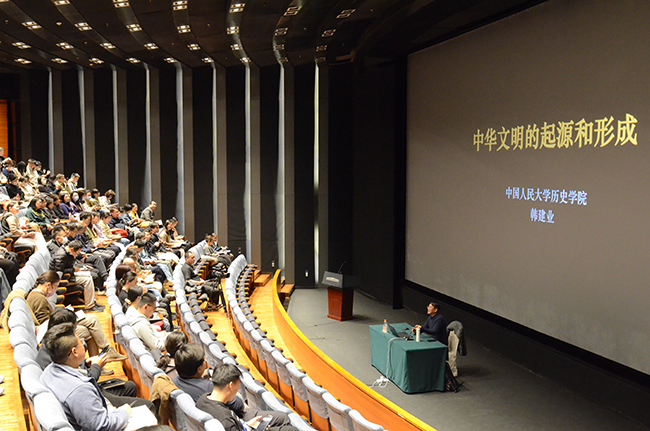 讲座伊始,韩建业教授从概念入手,阐释了“文明”与“国家”的关系。他指出,文明是物质、精神和制度创造的综合文化实体,是人类社会发展到一定阶段的产物;而国家则是文明社会的政治组织形式。韩教授强调文明具有跨社会形态的稳定性,而中华文明作为世界上唯一未曾中断的原生文明,具有独特的一元多支一体格局。