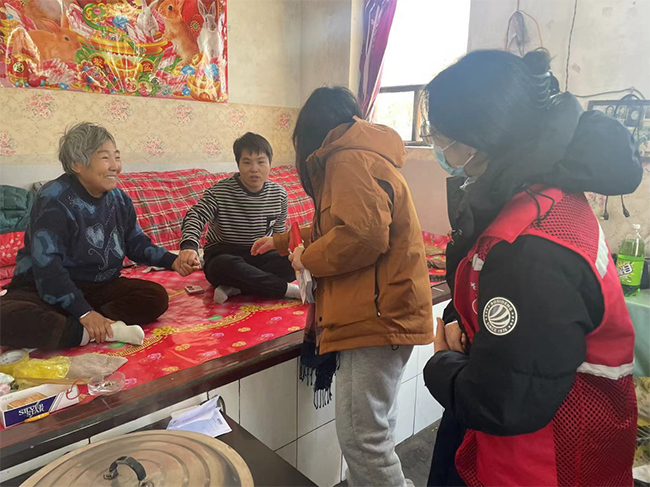 刘杏琪与工作队员入户走访监测户