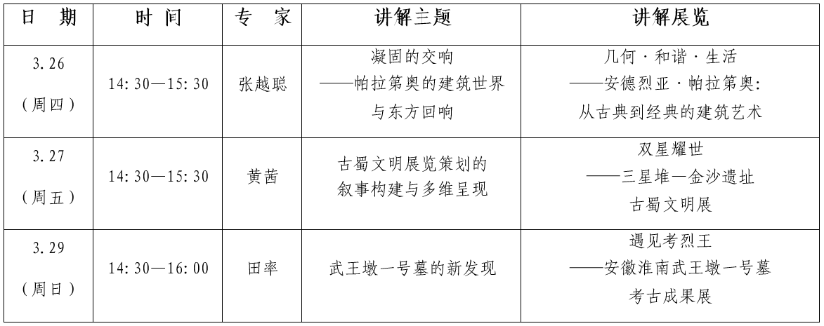 中国国家博物馆“专家讲解周”将在三月推出3场专家讲解。本期专家讲解聚焦“遇见考烈王——安徽淮南武王墩一号墓考古成果展”“双星耀世——三星堆—金沙遗址古蜀文明展”“几何·和谐·生活——安德烈亚·帕拉第奥:从古典到经典的建筑艺术”三个临时展览,通过策展人和专家的导赏,带您从不同视角看展览、赏文物、观古今,感受文化的永恒魅力。