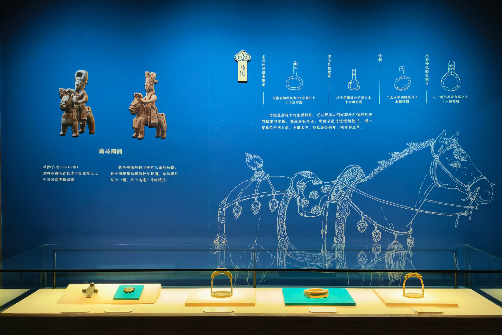 “跃马扬鞭——马年新春文化展”展览遴选与马相关的精品文物120余件/套,通过“良驹伴文明”“车马昭礼制”“鞍辔有工巧”“蹄声通万里”“神骏绘流年”五个单元,全方位、多角度展示出马在中华文明长卷中的千姿百态,生动阐释马在中华文化中的深厚内涵和时代价值。
