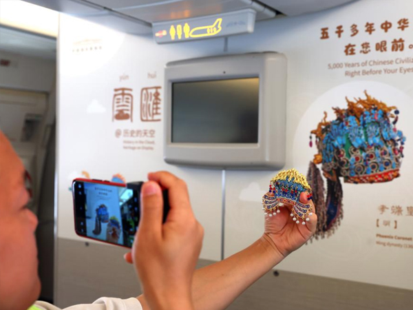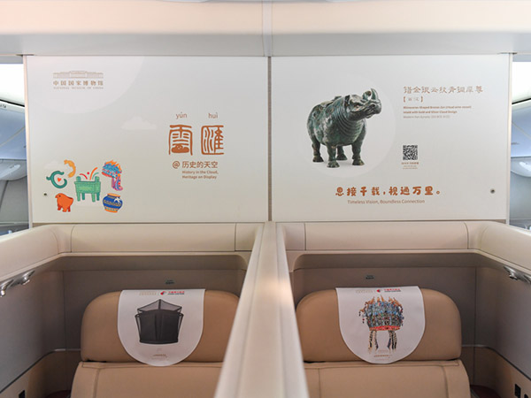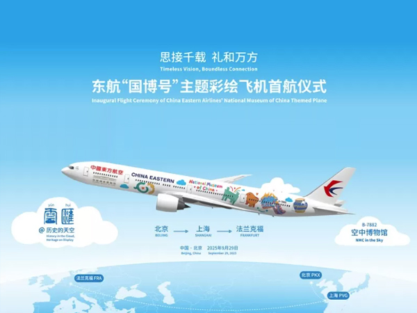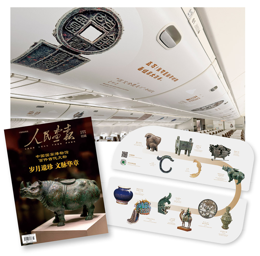 空中博物馆是博物馆人将中华优秀传统文化创造性转化、创新性发展写进万米高空的崭新尝试。国博有48个展厅,我们把“国博号”主题飞机当作第49个展厅,在2025年国庆和中秋来临之际推出云特展,题为“雲匯@历史的天空”。