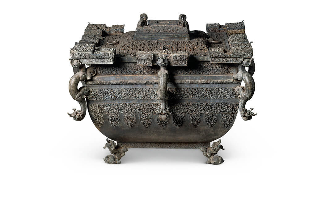 《周礼·凌人》记载:“春始治鉴,凡外内饔之膳羞鉴焉,凡酒浆之酒醴亦如之,祭祀共冰鉴。”原来这种器物是古人用来冰酒的,尊缶内装酒,鉴、缶壁之间的空间放置冰块,在春夏之季就可以喝到冰爽的酒。这件青铜冰鉴堪称世界上最早的冰箱,也是当时祭祀中一种重要的礼器。如此奢华的器物,在两千多年前的战国时期只能是贵族才享用得起。