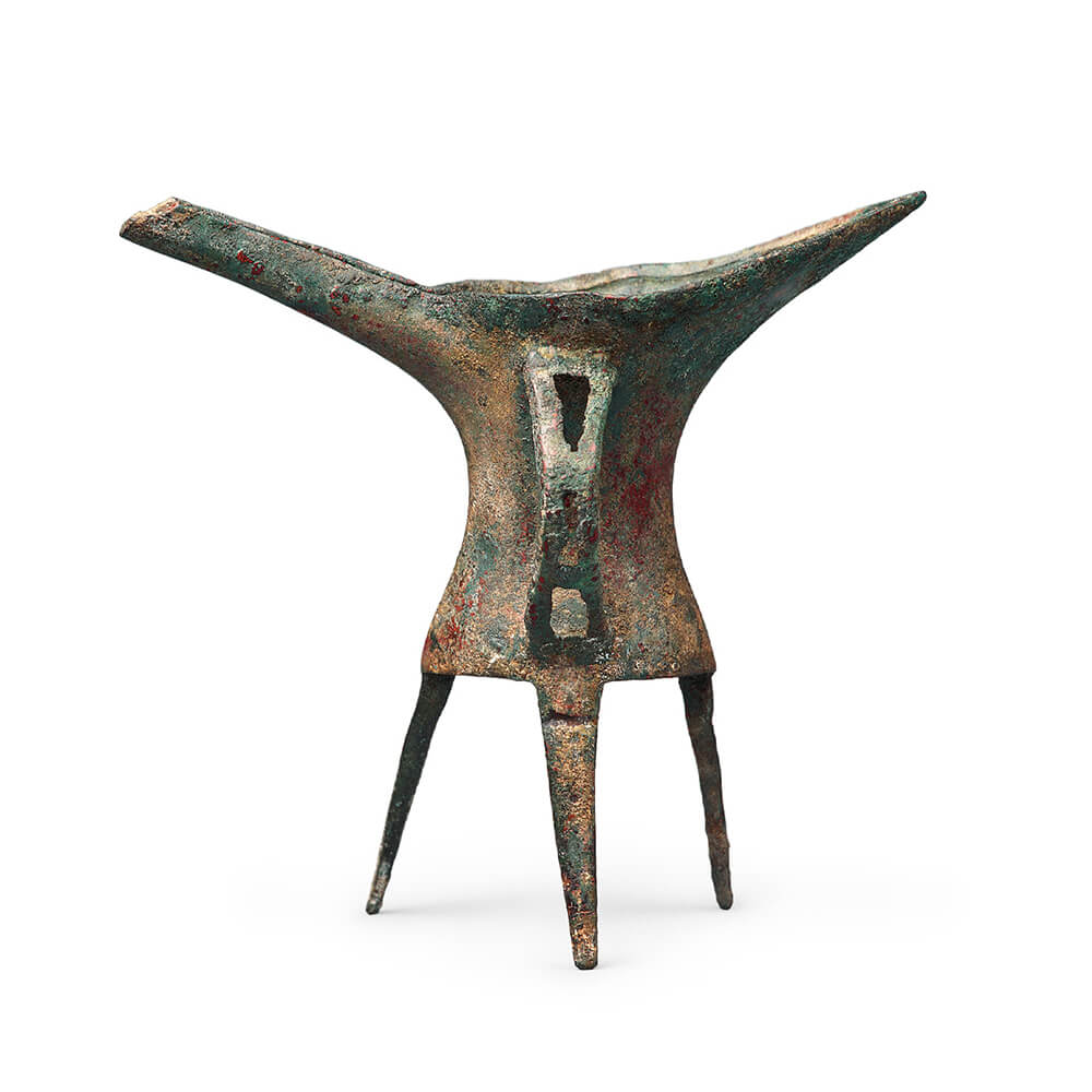 器流、尾较长,无柱,束腰,平底,镂空鋬,三足呈细锥状。经测,此器合金成分为铜92%、 锡7%,属锡青铜,是目前所知中国历史上出现最早的青铜容器。此青铜爵器壁较薄,器表粗糙,无纹饰,表现出早期青铜器特征;但其采用多块复合范浇铸,工艺复杂,在中国古代铸造工艺史上是一次飞跃,为此后商、周时期青铜铸造的鼎盛奠定了技术基础。