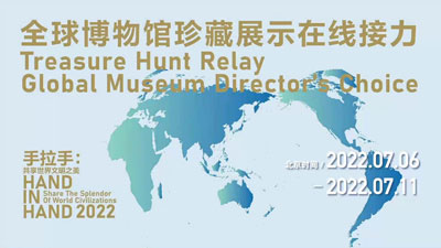 博物馆是保护和传承人类文明的重要殿堂,也是文明交流互鉴的重要平台。2022年7月6日至11日,中国国家博物馆联合国内外33家顶级博物馆共聚云端,以“手拉手:共享世界文明之美”为主题,共同举办全球博物馆珍藏展示在线接力。10位国内博物馆馆长将联袂讲好中国故事,传播好中国声音,并与来自五大洲的24位国际博物馆馆长一起,用约150件珍贵藏品展示人类文明的灿烂成果,传递和弘扬平等、互鉴、对话、包容的文明观,增强不同文明对价值内涵的认识的理解,推动构建人类命运共同体。