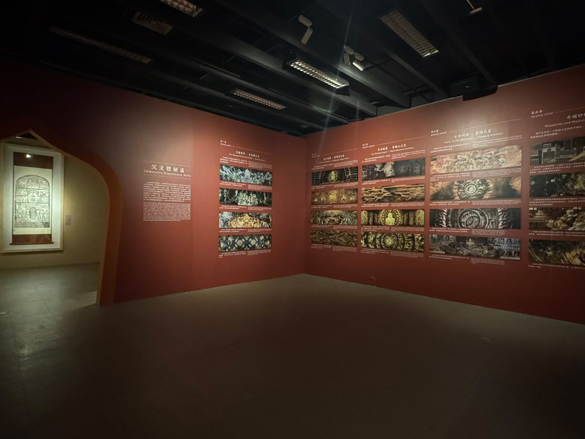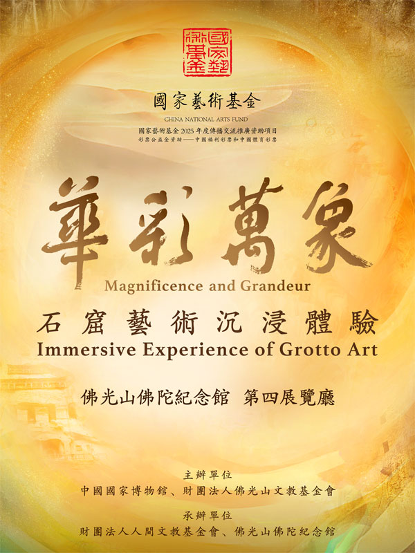 “华彩万象——石窟艺术沉浸体验”由中国国家博物馆、财团法人佛光山文教基金会主办,财团法人人间文教基金会、佛光山佛陀纪念馆承办。展览由“菱格世界·克孜尔石窟”“万古遗珠·敦煌莫高窟”“东方微笑·麦积山石窟”“十方同源·云冈石窟”“奇崛妙境·龙门石窟”五个单元和“沉浸体验厅”共同组成,通过创新应用数字建模、AI算法、数字交互等前沿科技手段,将数字影像与佛光缘美术馆总部所藏的代表性壁画摹本、雕塑、拓片等实物展品结合展示,让观众能以更立体、更沉浸的方式触摸历史、感受艺术。本次展览是石窟艺术活化的具体举措,打开了石窟艺术全新的解析和观赏视角,也在技术和感知层面突破了传统不可移动文物展示的基础模式。