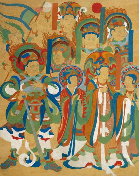 敦煌石窟保存了4至14世纪间的700多个洞窟,有壁画45000多平方米,彩塑2000余身,是举世瞩目的世界文化遗产。它展现了1000多年间中国艺术的发展脉络,尤其以五代之前的艺术遗存最为珍贵。张大千正是对敦煌艺术进行全面整理、临抚、学习、继承和发扬的先驱之一。 1938年张大千居于成都时,友人严敬斋多次向其描述了敦煌石窟中所存的魏晋隋唐时期的珍贵壁画,这直接促使张大千产生了赴敦煌考察的愿望。探求高古艺术面貌,从中汲取创作的营养,以临摹的方式将千里之外的珍贵艺术展现于公众面前,皆是他此行的主要目的。1941年春末至1943年的两年零七个月时间,张大千首先为敦煌石窟编号,共编309窟,是第一位完成这一工作的中国人。张大千之子张心智,画家孙宗慰,油工窦占彪、李复,喇嘛画师昂吉、格朗、三知、夏吾才朗、杜杰林切,友人谢稚柳,侄张比德,门人肖建初、刘力上等人先后参与到临抚敦煌壁画的工作中。他们分为三组,两组临摹,一组加工画布准备颜料。今天我们看到的临摹作品,当是张大千合众人之力而成,当然他是其中的灵魂人物,起到了决定性作用。他们主要采用先以玻璃纸勾摹轮廓,然后利用日光透出正稿并标以颜色的方法。在形象和用笔方面,以一丝不苟的态度将壁画的形象描摹出来,又试图以自己的推断在摹本中还原因年代久远而产生变化的色彩。期间共得摹本276件,涉及佛像、菩萨像、佛本生故事、说法图、经变图、供养人像、藻井装饰图案等多种题材。 临摹敦煌的经历,使得张大千的艺术创作产生了极大的转变,人物形象更加饱满生动,线条流畅而富于变化,赋色浓艳又不失端庄。作品带有了更多职业画家工细,富丽的风貌,与单纯的文人画风拉开了距离。这些作品分别在上世纪四五十年代,展出于兰州、成都、重庆、日本东京、法国巴黎等地,为世人了解敦煌艺术的伟大成就提供了契机。 |