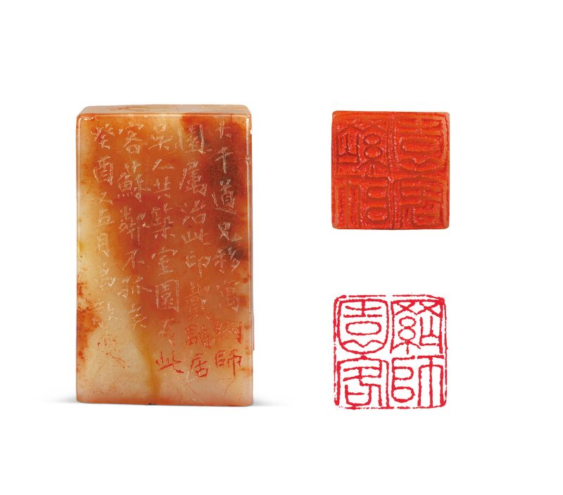 篆刻艺术于方寸间写天地之无穷,与书法、绘画一同被视为中国书画艺术“三绝”。张大千一生用印之多,选印之精,钤印之规整,同时代的书画家无出其右者。张大千年少时便享誉艺坛,且能自运篆法,奏刀制印,可以说他对于篆刻艺术非常了解。他一生中所用印章多由陈巨来、方介堪、顿立夫、王壮为等名家所制。材质多为寿山石、青田石、象牙等,偶用昌化鸡血石。印文以姓名、斋馆、成语、诗词、收藏、鉴赏等内容为主,多出于其对某一阶段创作、经历或心境的体悟,且钤盖颇具章法,与画作相得益彰。张大千以画作抒发自己的心境所悟,画面或有不足之处则多以长题书法加以弥补,同时印章的内容亦能起到画龙点睛的效果,使鉴赏者观之能为之一振,有所感悟。因此可以说大千用印正是其艺术在精微处见精神的写照。 |