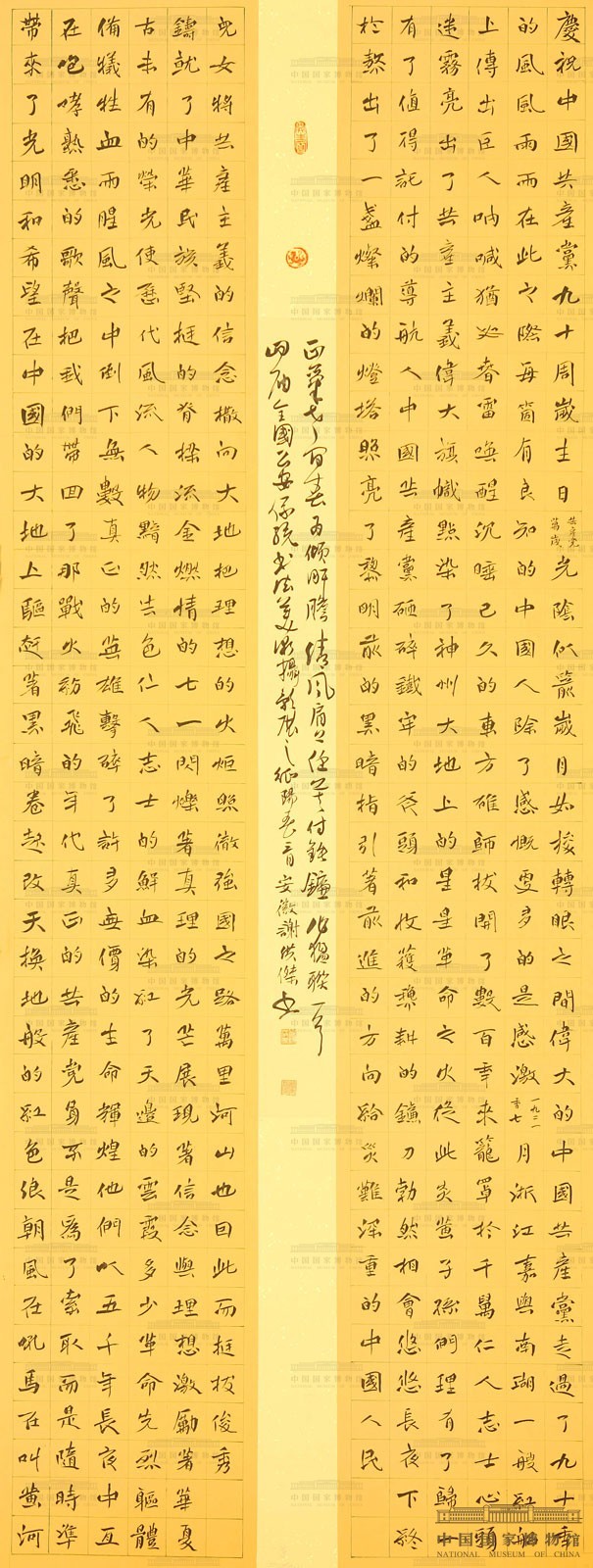 盛世谱华章,卫士竞风采。在全国各族人民热烈庆祝中国共产党成立90周年的喜庆日子里,公安部、中国书法家协会、中国美术家协会、中国摄影家协会在国家博物馆隆重举行第四届全国公安系统“卫士之光”书法、美术、摄影作品展览,用艺术的形式纪录公安队伍为维护社会稳定、打击犯罪、服务群众和经济建设所作出的牺牲和奉献,彰显人民警察忠诚于党、忠诚于祖国、忠诚于人民、忠诚于法律的政治本色。