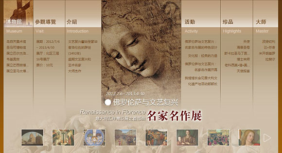 2012年7月6日至2013年4月30日,中国国家博物馆与意大利文化遗产活动部文物管理与开发司共同推出“佛罗伦萨与文艺复兴:名家名作”展。该展览是在中国国家博物馆设立的意大利五年长期展厅的第一个展览。