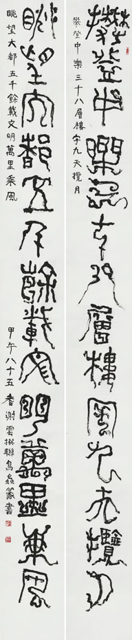 谢云,1929年10月生,浙江苍南县人。原名谢盛培,号裳翁,中国人民大学新闻系毕业。编审。中国书法家协会顾问、中国作家协会会员。 幼遵家教习字习诗。习字始学颜、柳,继学篆、隶,1980年后广涉汉魏晋碑刻及鸟虫篆等异体字,融篆、隶、行、草于一格。书法象隽形美,拙辣兼施,草篆尤多变化。刘海粟大师评其书法:“奇而不奇,不奇而奇,放逸可观。”书法作品入选第二届全国书法展。 1989年1月在中国美术馆举办“谢云书法展”。1989年、1993年先后与日本京都书画院院长田能村直外、著名书法家近藤摄南先生在京都、大阪举办书法展。 1991年,中国书法家协会第三届换届,被选为秘书长并任中国书法家协会分党组副书记(主持工作),至2000年卸任。谢云习字习诗诗书相融,长诗《笔潮》(第一章)收录于《新华文摘》1992年第十期。 长期从事出版工作,曾任广西出版总社社长、广西新闻出版局局长、中共广西壮族自治区党委宣传部副部长、广西书画院院长、中国出版工作者协会常务理事。创办线装书局,任首任总经理、总编辑。主编出版线装影印本《毛泽东评点二十四史》,传誉书坛。获国家新闻出版总署三十年出版荣誉称号。 出版著作有:线装书局本《谢云篆书》,中国文联出版社书画评论集《灯前余墨》,人民美术出版社、漓江出版社、荣宝斋出版社《谢云书法集》六种,中国书籍出版社《〈毛泽东评点二十四史〉线装影印本编辑出版社纪实》,线装书局《谢云八十书画》,中国文联晚霞文库《谢云旧体诗集〈笔潮吟〉》,人民文学出版社《谢云新诗》,西苑出版社《谢云鸟虫篆书法艺术》《唐白居易长恨歌》,日本赞交社《谢云书法集》及书学、出版学学术论文等。 2001年获中国书法家协会书法艺术特别贡献奖。2010年8月获上海世博会联合国千年发展目标公益主题活动组委会中国国粹文化卓越成就奖。 2007年1月,中国国家博物馆收藏谢云捐赠书法作品68幅;同年,捐赠母校浙江平阳中学书法作品108幅,平阳中学设“谢云书法艺术室”。 2014年元月第二次捐赠中国国家博物馆现代书法作品10幅。中国国家博物馆2011年11月29日至2012年2月28日展览谢云捐赠68幅书法作品并出版《中国国家博物馆捐赠系列丛书•谢云书画艺术》。 2015 年,中国国家博物馆收藏谢云捐赠书法作品81 幅。 |