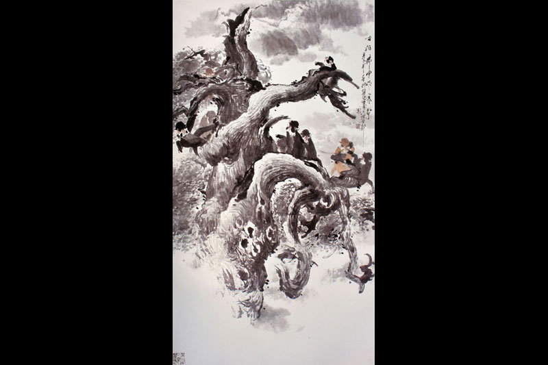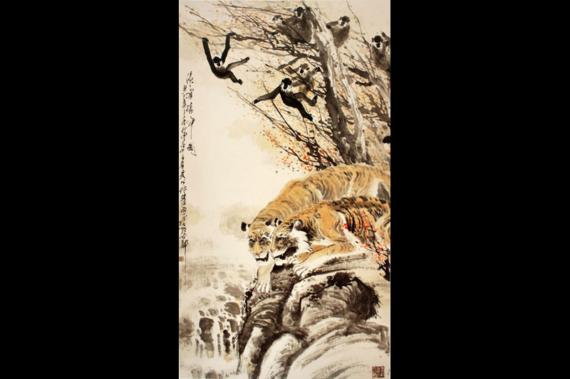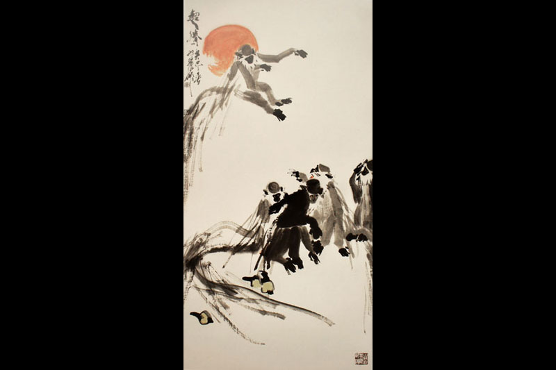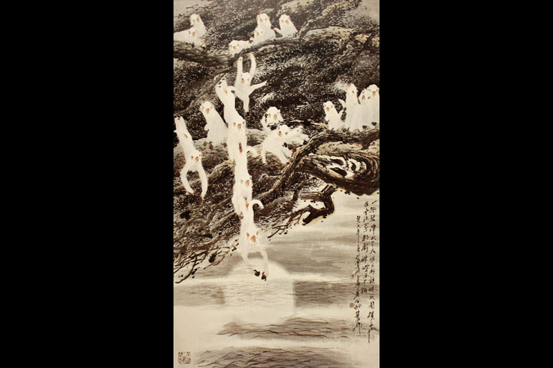 徐培晨先生是当代优秀、杰出的写意花鸟画家。自从和他相识、交往二十多年来,看到他始终如一地以虔诚的心态、顽强进取的精神,充满自信从而以锲而不舍的努力在自家的园地辛勤耕耘,成绩斐然可观,艺术修为日臻成熟境界。从这样一位画家成长、上升的过程,确实令人真切的感觉到中国画艺术在改革开放新时期以来取得的真实而巨大的进步。 徐培晨自幼喜画,1974年考入南京师范大学美术系,有幸师从南师大各位名师,南师大美术系的前身是当年徐悲鸿先生执掌的中大美术系,名教授杨健侯等都出其门下,从而沿袭了徐先生美术教育的高标准严要求、对社会对学生负责任的思想。徐培晨作为农家子在文革动乱时期能够进入高等艺术学府,其全身心投入,兢兢业业、孜孜矻矻极力向学的拼搏是人们不难想象的。他以优异成绩留校任教,上世纪80年代初继续研修,技艺精进,人物、花鸟、山水、走兽、诸科兼能,工笔重彩、水墨写意无所不通。这或许是做教师必备的功夫,但是这一种兼能互通的本领,对于他后来的精专画猴艺术可是大有裨益。用俗话来讲,徐培晨教学之外搞了一块“自留地”,那就是他最为倾情痴心的画猴艺术。我们知道,中国画是一个完整的体系,大体分为人物、山水、花鸟三大类,此外,走兽归为花鸟类内,(鞍马大多与人物分不开),而猿猴一种又是走兽科的一部分。显然,徐培晨选择了“精专”,画的多也画得精。于是,这些年来徐培晨时常被冠以“猴王”等称号,虽然其中难免有些炒作的味道,但是画家的付出、努力和成绩没有白费,也的确有“实至名归”的意义。事实上艺术实践也和做其他学问一样,“精”与“博”并非对立而是相辅相成、辩证一体的关系。徐培晨既然精于画猴一道,却不仅只画个猴儿为止,他把山水、花鸟,乃至人物都融汇在一起,创造出完整的画面,独特的意趣和意境,更形成特有的画风和个性。 画史上不乏长于画动物鞍马的名家,唐代的曹霸、韩幹画马,宋代易元吉画猴,彪炳史册。近代张善孖画虎、徐悲鸿画马、黄胄画驴,更令人赞叹,影响巨大而深远。徐培晨画猴专精此道二十余载,日夕投入,乐此不疲。行文至此我不禁想到,画家生涯其实是爱好和情感的投入,是一种绵延不绝的激情,对生活、对自然、对生命的爱,在画家的生涯里化作艺术生命的投入,必将产生打动人心的艺术品。在画家徐培晨的艺术里,我感到他的一颗跳跃的童心,就像我们幼年时候在街头看到民间艺人耍猴子,以及在动物园观看猿猴跳跃嬉戏而不愿离开的心情,只是徐培晨把这一颗爱心、童心牢牢地抓住了,通过笔墨凝化成再现的艺术形象。到底老徐在早期探索过程中付出了多少代价,费了多少心血,消费了多少宣纸,方才取得成功,画家不讲我们只能去猜了。干我们这一行的都知道,搞艺术只靠天分不行,还要大量的劳动,要有紮实的基本功,要有真本领。 徐培晨是一位有真本领的画家。他早年画工笔重彩画,人物也画的不错,毕竟当时的美术教育就是以造型能力为基本功培养的。宽阔他笔下的写意猿猴形神兼备,生动活泼,各种形体语言相当丰富,猿猴的大小群体生活场景,长幼相亲,尊卑有别,几乎是一幅幅猿猴社会生活场景图,就纯技术的角度看似乎也不比创作人物画简单。但是,徐培晨的艺术充满活泼的生机和盎然的趣味,令观众得到充分的审美享受乃至会心的一笑。 近年来中国画坛出现一种技术化的倾向,突出表现在工笔画尤其是走兽题材方面,大约是由于照相机和电子技术高度发达的影响,在青年画家中出现了和照相机“争功”的势头,把郎世宁、刘奎龄父子传下来的撕毛技术,发挥到极致,甚至聚焦到老虎鼻子上的绒毛一根都不少,那样的超真实,看得我真是服了。但是我不禁怀疑是否有此必要?我有时想到西方绘画,从来以真实见长,19世纪末达到极限,(前年我在马德里普拉多美术馆欣赏到不是太有名的油画家令人惊讶的超级技法作品)以致后人难以为继,科技的发明刺激西方绘画走向另一极端:从“极似”走向“极不似”,乃至达到“反艺术”的道路。当然,市场经济金钱的拉扯和推动作用很明显。今天中国画局面在市场的推动下可谓狂飙猛进,会不会重蹈西方艺术的覆辙?在当下西方现代艺术及其掮客的攻势下,值得有智慧的中国人思考了。于是,如何保持和发展中国画的写意精神,让我们的文化和艺术,保持其可贵的人文、人本精神,即努力创造为广大人民群众喜闻乐见的、富有人性的真善美特性的艺术,无论如何都要爱护和提倡。 如上所述,我更加赞赏画家徐培晨的写意艺术,在形神兼备的目标下,画家驰骋神思,自由自在的想象和创造,画家的笔下既是真实的猿猴生活的大自然,更是任凭他神游八荒、率意挥洒的想象中的世界。徐培晨的笔墨娴熟,简练松活,清雅潇洒,境界脱俗,堪称高手。无可否认的是,由于水墨写意画具有相当的难度,笔墨表现能力须经多年历练方可臻于成熟,作为具有丰富文化内涵的中国写意画,对于画家的深厚宽广的学养以及为人品德,要求是很高的。不难想象当下难免浮躁和急于事功的中国画界,全国性的大展上高端的写意画精品力作难得见到的原因了。 我所熟知的画家徐培晨是一位颇有个性、率真脱俗的艺术家,在他的身上还保有中华民族宝贵的传统美德,为人纯真质朴,谦逊和蔼、从不张扬。对照当下美术界某些自我标榜