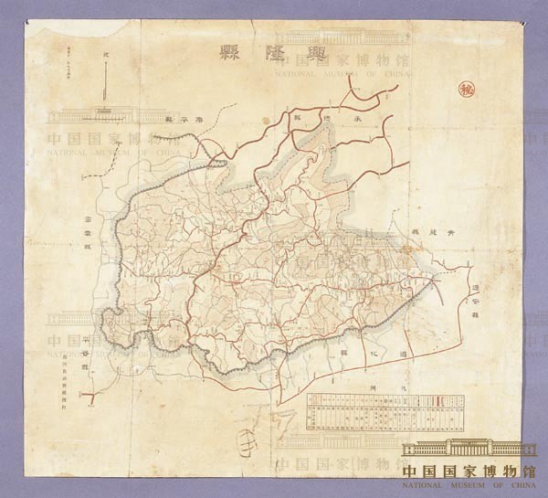 1931年九一八事变后,日本侵占了我国东北,并建立了伪满洲国。而长城沿线则被他们称为伪满洲国的所谓“西南国境线”,采取了一系列“固边措施”,重兵防守,加强控制,严密封锁。从1939年秋开始,以日本关东军为主,在伪满洲军、伪蒙疆军和华北方面军的配合下,在长城沿线制造了横跨冀东、热河、辽西及察哈尔地区的、世界罕见的千里“无人区”。这里的“无人区”主要包括:一是“无住禁作”地带,即不准住人,不准耕作,实行彻底“三光”政策的区域。二是“集团部落”,即在平地大川地域修建有围墙、有武装看守的“人圈”,虽有人居住,但没有行动自由。三是“无住禁作”地带和“集团部落”之间的“禁住不禁作”地带。到1944年春,“无人区”计划基本完成。其范围涉及今河北、辽宁、内蒙古、北京、天津5个省、市、自治区的25个县(市、区),面积约5万平方公里,“无住禁作”地带约8500平方公里,被集家的自然村1.7万多个,共建“集团部落”2506座,被驱赶集家的群众约140万人。此图为伪热河省公署总务科绘制的“无人区”重点县兴隆地图,右上角印有“秘”字。图中阴影部分为“无住禁作”地带。1959年河北省博物馆拨交。