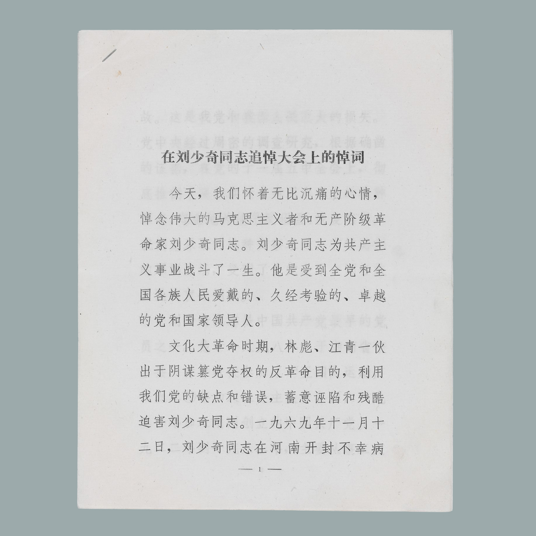 邓小平在刘少奇追悼大会上致的悼词文稿