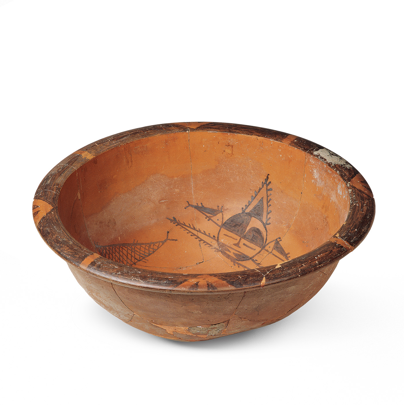 古代半坡人在许多陶盆上都画有鱼纹和网纹图案,这应与当时的图腾崇拜和经济生活有关,半坡人在河谷阶地营建聚落,过着以农业生产为主的定居生活,兼营采集和渔猎,这种鱼纹装饰是他们生活的写照。