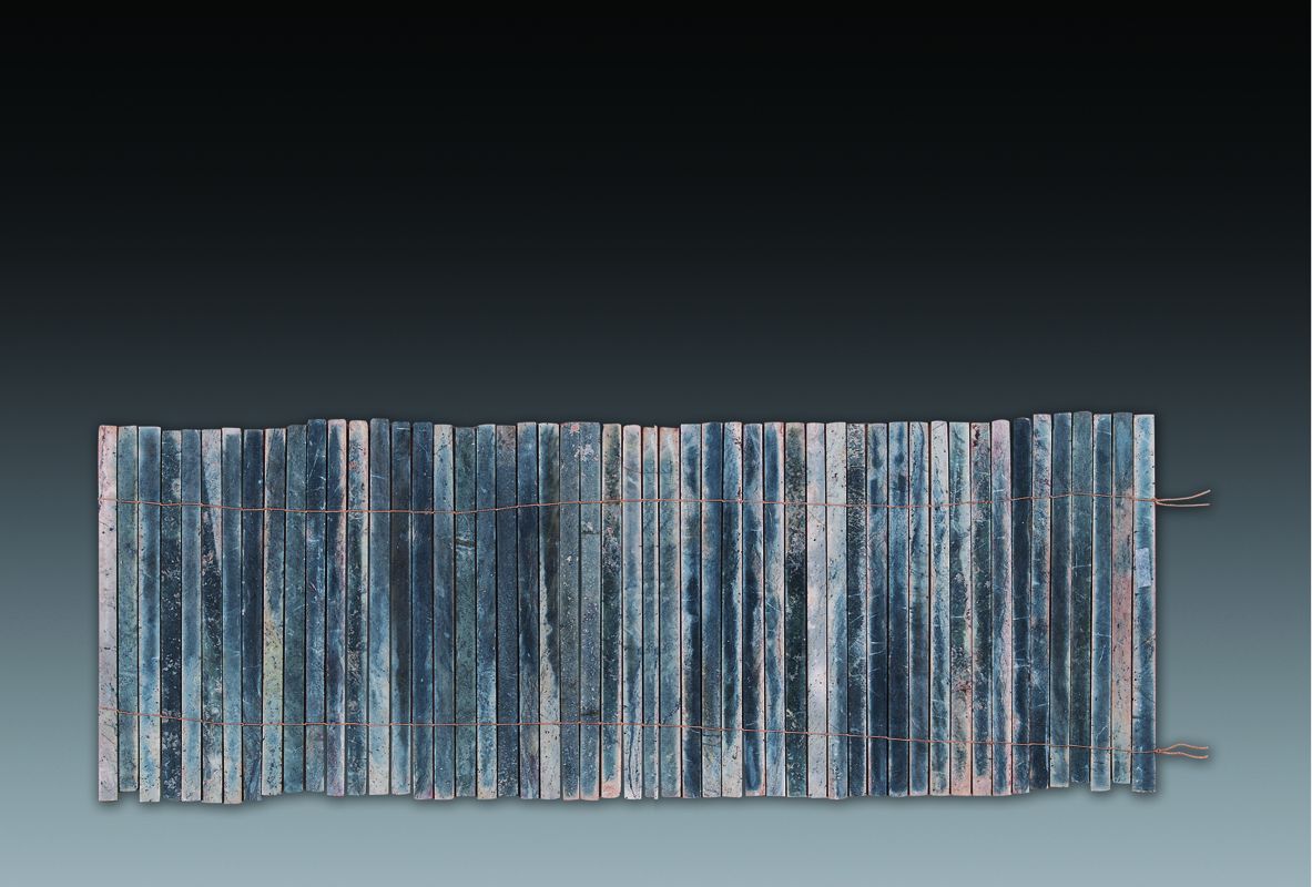 在我国古代,纸张没有发明之前,把木或竹制成扁长条形,在上面写字,称为简,把一根根简按书写顺序编起来,叫做册。“册”字在甲骨文和金文中是一个象形字,其写法为“□”,一看便明,十分形象。此册应是仿竹册而制。玉制简册比木、竹制成的简册更难制作。首先要从大料上锯切下长条形玉材,再把切痕磨除,厚度只有0.11厘米左右。故每制一根玉简,都要费很长时间,也反映出当时制玉水平之高超。所以玉制简册大多为特殊用途。