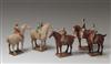 此套5件,均女性,着紧身服、骑马,手中木质鞠杖已朽失,但策马打球的身姿栩栩如生。马尾束起,以防争抢中相互缠绕。