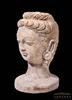 此头像发髻为大波浪纹,圆脸,眉、眼细长,双耳饰花式耳环。