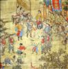 多铎(公元1614~1649年),努尔哈赤第十五子。天命五年(公元1620年)封贝勒,天命十一年(公元1626年)为正白旗旗主。天聪二年(公元1628年)随皇太极出征蒙古有功,赐号“额尔克楚呼尔”,不久封和硕豫亲王。顺治元年(公元1644年)随多尔衮进关,打败李自成农民起义军,再率师南下,至南京,破扬州,俘南明福王,驰骋江南,战功卓著。顺治四年(公元1647年),晋封为辅政叔德豫亲王。顺治六年(公元1649年)病卒。此图描绘多铎率军进入南京的情景。