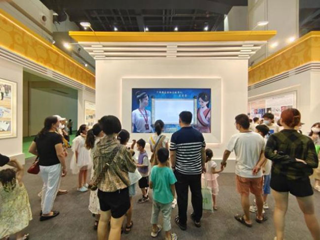 艾雯雯于今年7月“入职”国博。此次“博博会”国博展区艾雯雯再次出现,8K超高清大屏幕上展示她在国家最高历史文化艺术殿堂学习、工作的场景,引来众多观众驻足观看。艾雯雯人形立牌旁,许多观众在合拍打卡,他们表示艾雯雯造型逼真,服饰靓丽,很期盼在国博展厅场景下能看到艾雯雯担纲讲解。
