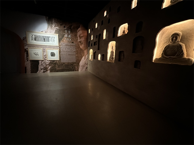 展览由“菱格世界·克孜尔石窟”“万古遗珠·敦煌莫高窟”“东方微笑·麦积山石窟”“十方同源·云冈石窟”“奇崛妙境·龙门石窟”五个单元和“沉浸体验厅”共同组成,通过创新应用数字建模、AI算法、数字交互等前沿科技手段,将数字影像与佛光缘美术馆总部所藏的代表性壁画摹本、雕塑、拓片等实物展品结合展示,让观众能以更立体、更沉浸的方式触摸历史、感受艺术。本次展览是石窟艺术活化的具体举措,打开了石窟艺术全新的解析和观赏视角,也在技术和感知层面突破了传统不可移动文物展示的基础模式。