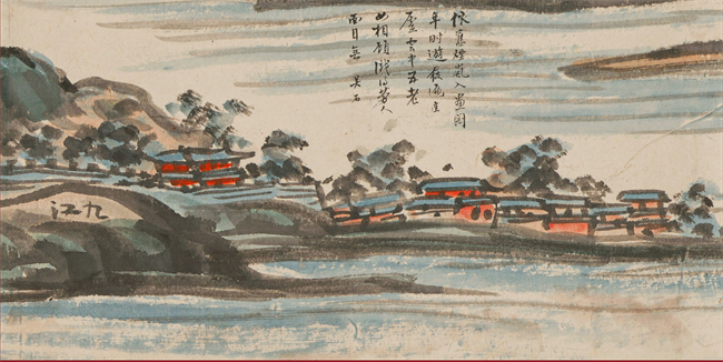 《长江万里图》长卷由何遂绘制于1940年冬,完成于1941年4月,上有吴石1941年在“川江段”“三峡段”“武汉段”“九江段”的题诗四首。