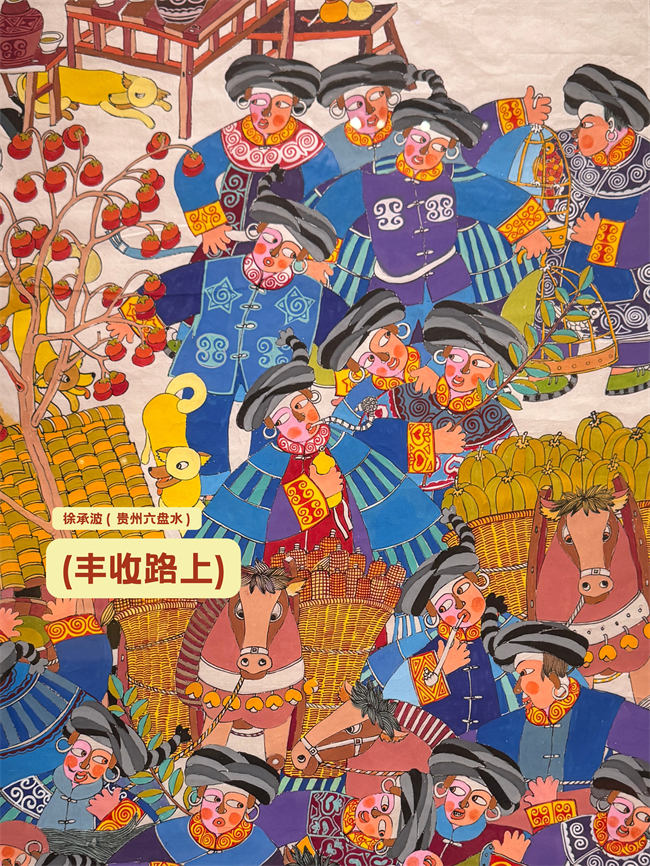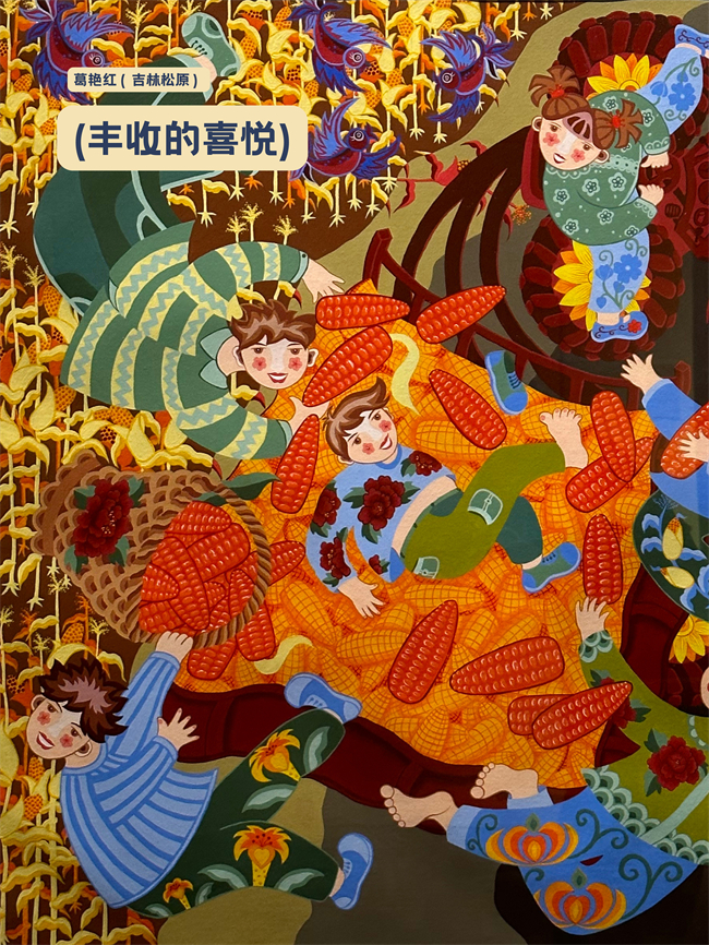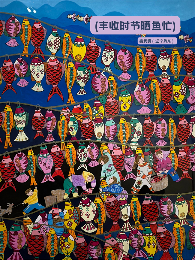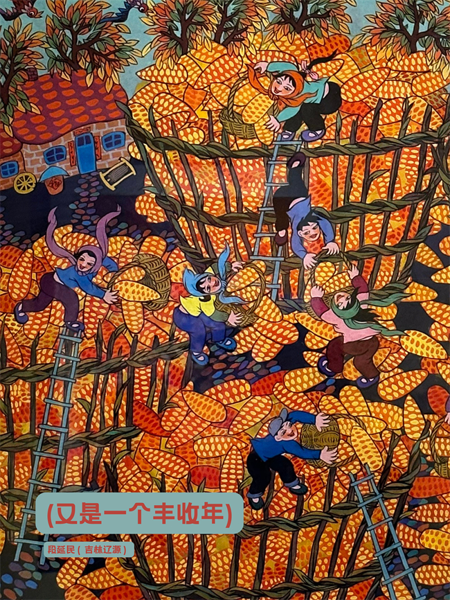 从东北的沃野千里到江南的鱼米水乡,从西部的瓜果飘香到东海的渔汛丰收……一幅幅画卷徐徐展开,描绘着大江南北相同的喜悦与不同的风情。这些作品既保留了乡土生活的质朴气息,又展现出民间绘画独特的艺术智慧,构图饱满鲜活,笔触间洋溢着对生活的深情。