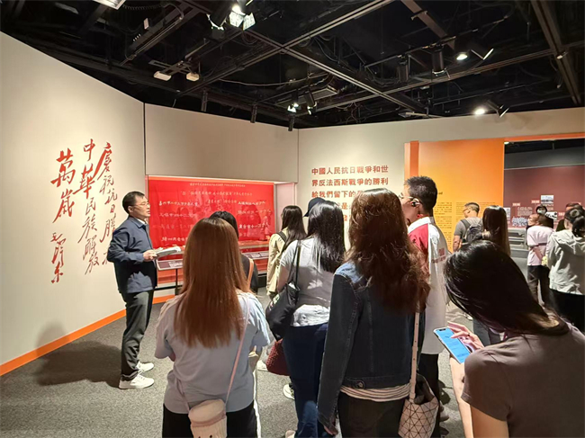 “万众一心 维护和平——纪念抗战胜利八十周年展览”内容策划组成员汪洪斌作展览导赏