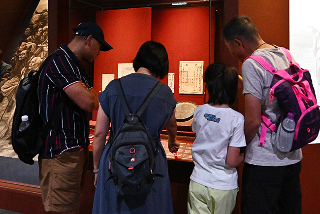 观众在展厅观看抗战文物