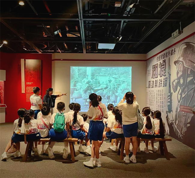 香港中小学生在展厅观看抗战历史影像