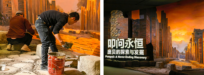 庞贝发掘史也是考古技术的演进史。19世纪朱塞佩・菲奥雷利用石膏灌注还原遇难者姿态,如今的DNA分析、古生物检测等技术,让考古能解读更细微的历史信息。展览的3个沉浸式展项通过数字技术制作呈现。