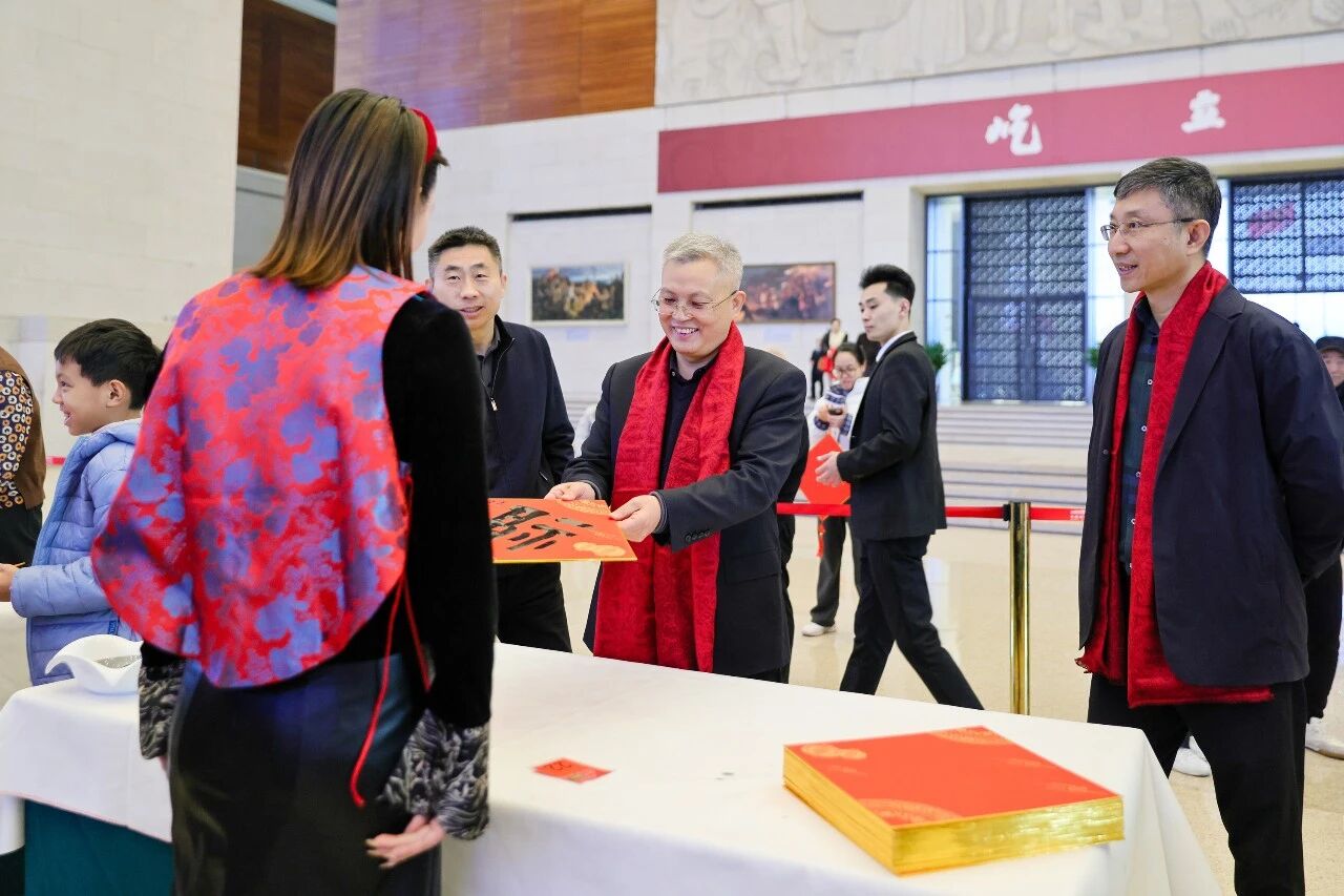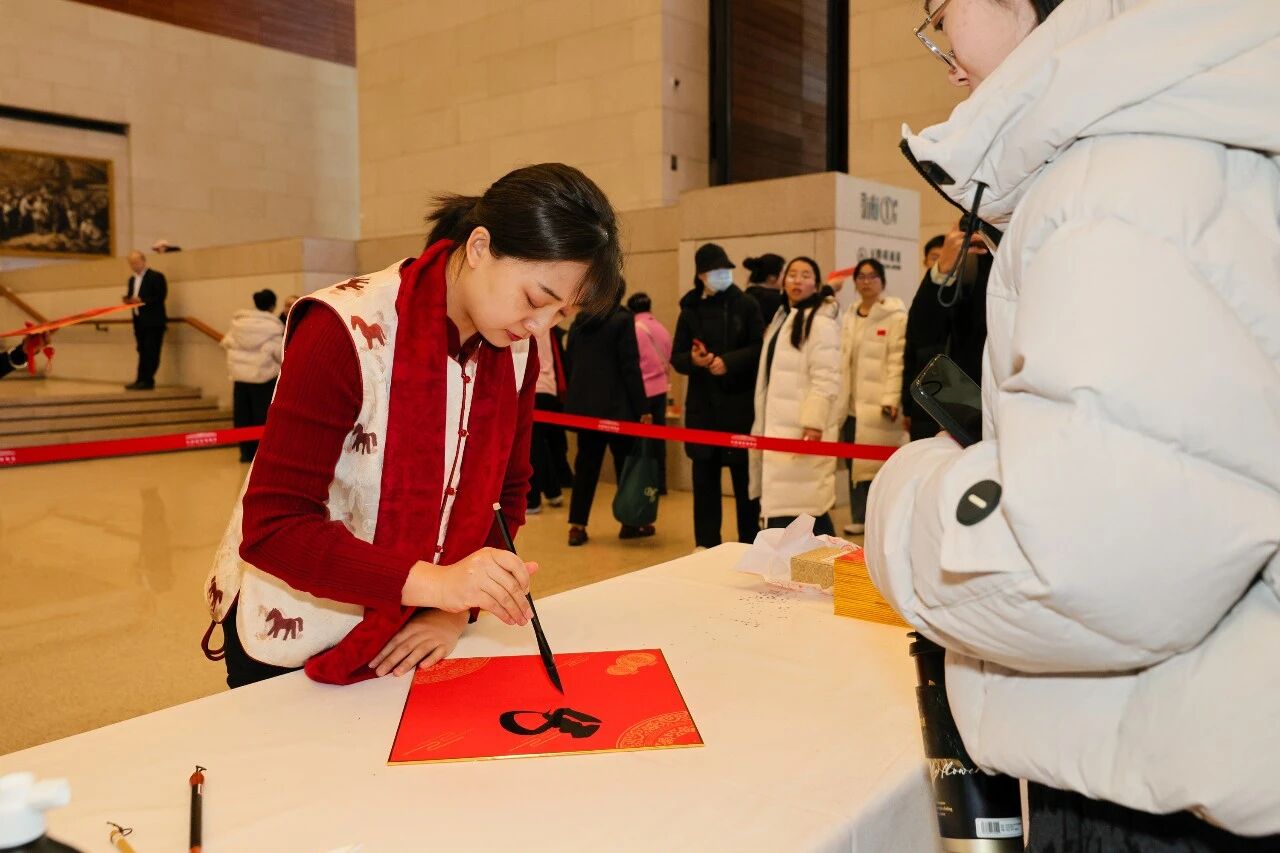 骐骥驰骋,翰墨迎春。2026年2月17日大年初一,中国国家博物馆迎来丙午马年首个开馆日,艺术长廊内墨香四溢、福气满堂,国博书画家们如约挥毫,为前来观展的观众现场书写福字、送上新春祝福,让观众在博物馆里感受浓浓年味,共赴一场墨香满溢的马年文化之约。国家博物馆领导班子在活动期间来到现场,与艺术家们一道为观众送上美好祝愿,共度佳节。