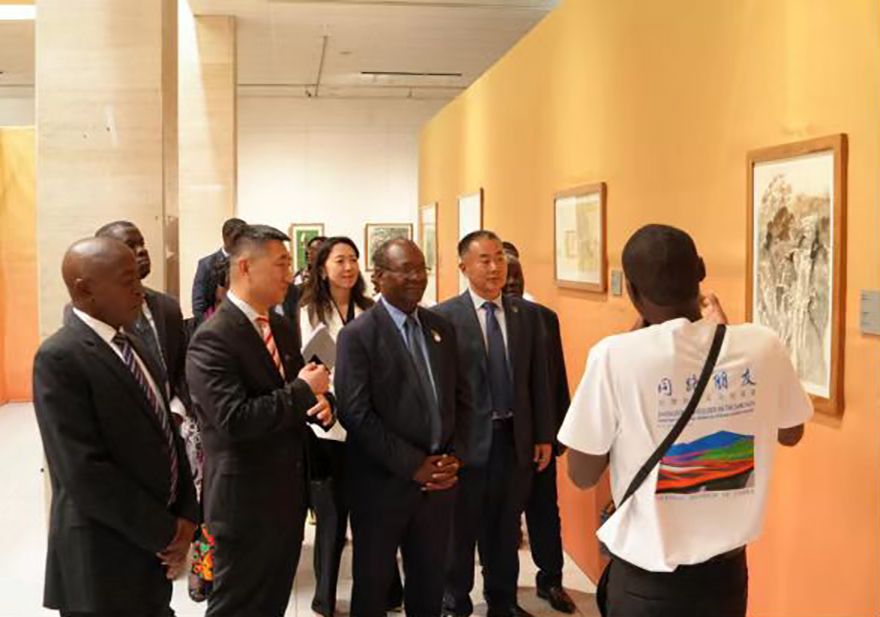 赞比亚青年导览员为嘉宾讲解展览